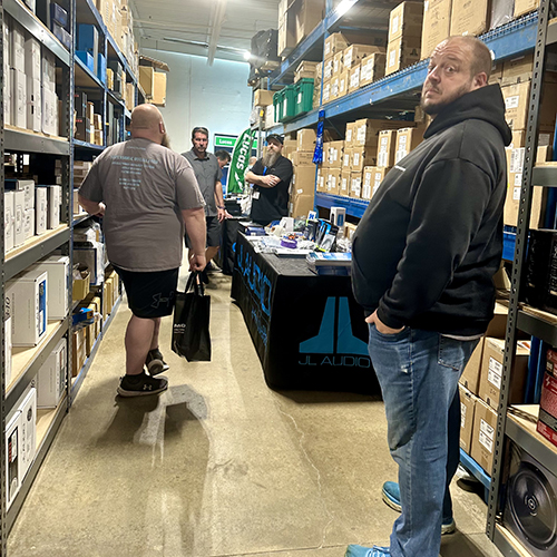 BLOOMINGTON, MN (05.16.24) – The D Source Distributing Dealer Appreciation Open House on Tuesday, May 14th at the company’s HQ, packed the house. Nearly 2 dozen of the industry’s top brands filled the warehouse house to showcase their latest products and connect with dealers from across the territory. Vendor tables in the warehouse were covered with custom table cloths with the company’s logo. Under tents outside JL Audio had a SXS, there was a Jeep Wrangler and an eBike set for demos.