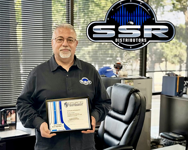 Tracy Farr holding a SSR University Graduation Certificate. The Motorcycle Training session was an extension of SSR‘s commitment to help 12volt retailers drive business across their marketplace. There is a monthly SSR University session in the Houston and Dallas locations one evening each month.