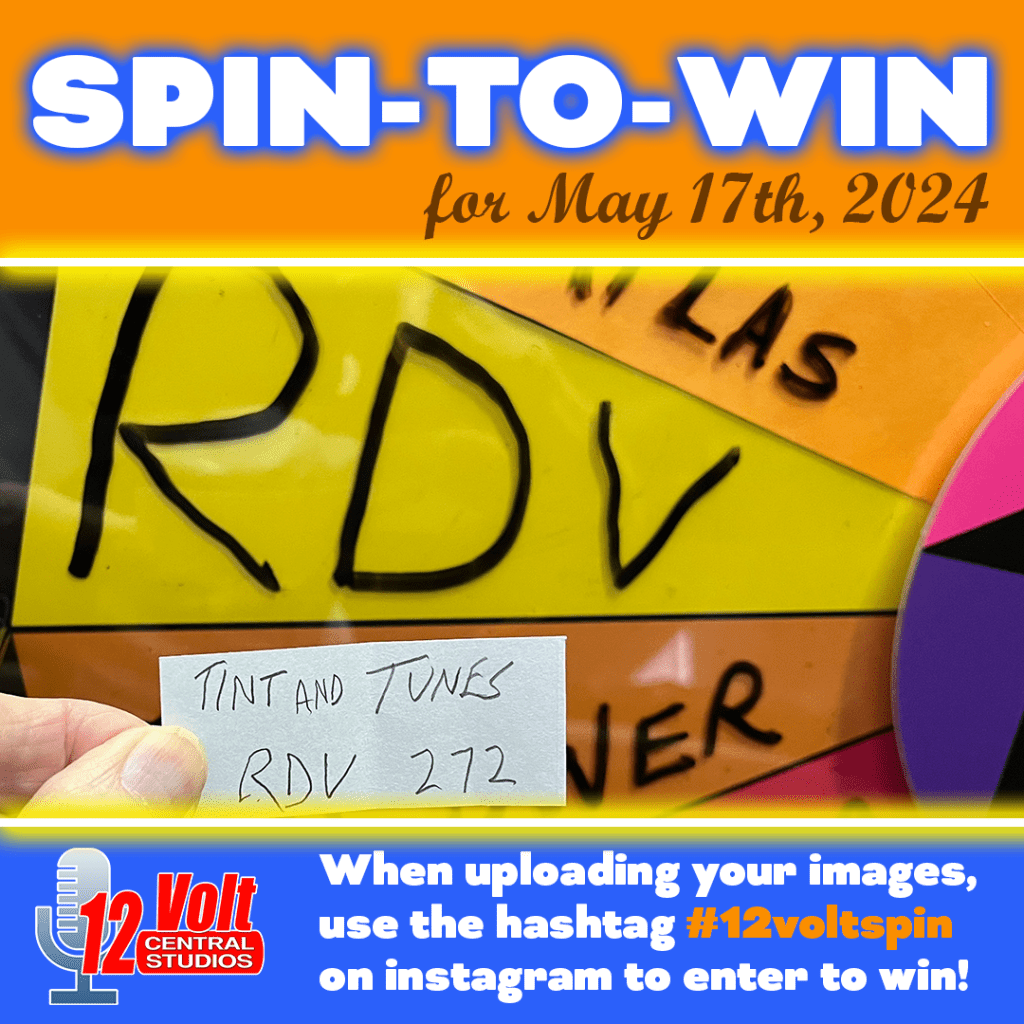 The 12volt Spin-To-Win Wheel rolled for the 272nd time on Friday morning May 17th. The Wheel landed on the RDV space and the Tint and Tunes slip was drawn from the jar. An Instagram post of the winning slip was posted. A video of the Wheel spin was also posted.