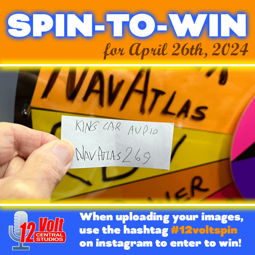 The 12volt Spin-To-Win Wheel rolled for the 269th time on Friday morning April 26th. The Wheel landed on the NavAtlas space and the King Car Audio slip was drawn from the jar. An Instagram post of the winning slip was posted. A video of the Wheel spin was also posted.