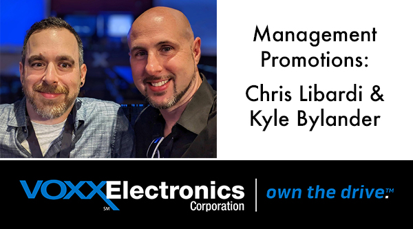 Chris Libardi and Kyle Bylander’s promotions signify VOXX Electronics’ continued focus on driving innovation, delivering exceptional products and services, and maintaining our position as a leader in the automotive aftermarket technology industry.