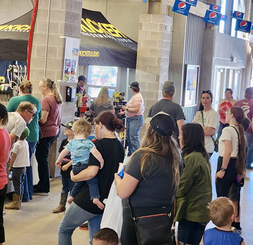 Enthusiast rolled in for the matinee Pit Party and packed the KICKER booth under the grandstands.
