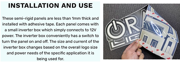 “We plan to use this acquisition to further expand our offerings in the Electroluminescent manufacturing space” says Justin Hartenstein, the Founder and Director of Product Development for ORACLE Lighting, “While we have offered these types of products to the Motorsport industry for years now, we plan to push into new markets such as illuminated vehicle wraps, commercial signage, marine applications, and illuminated trade show exhibit signage.” See more of ORACLE’s illuminated EL Panels and Signage at http://www.OracleLights.com/logos