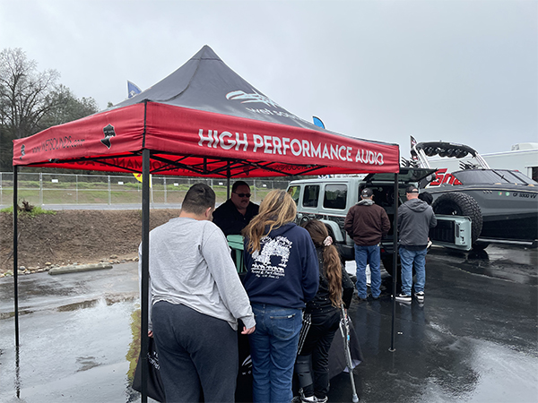 Activity from the event carried forward to a very busy Wednesday. Landen Walsh broke away from an installation to relay that all attendees were amazed with the sound and custom installation in the Jeep. The event was family friendly, with a jump house for children, plus food and refreshments for all. Appointments for installations were scheduled with many customers who left with T-shirts and the Wet Sounds Jeep Experience.