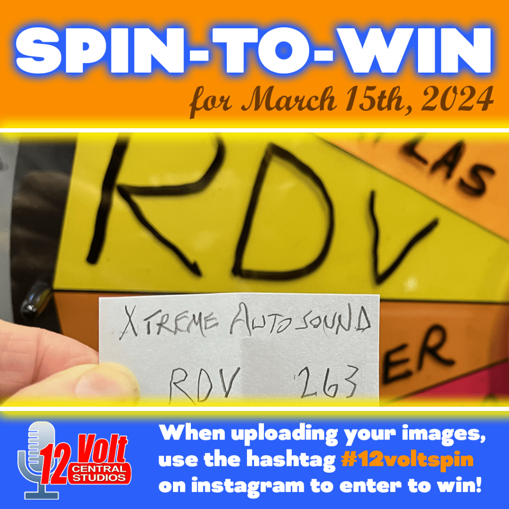 The 12volt Spin-To-Win Wheel rolled for the 263nd time on Friday morning March 15th. The Wheel landed on the RDV space and the Xtreme Auto Sound slip was drawn from the jar. An Instagram post of the winning slip was posted. A video of the Wheel spin was also posted.