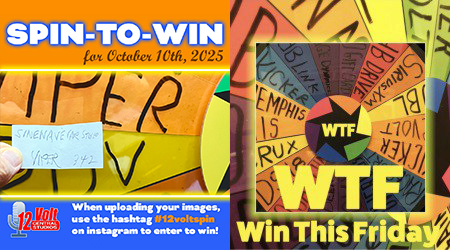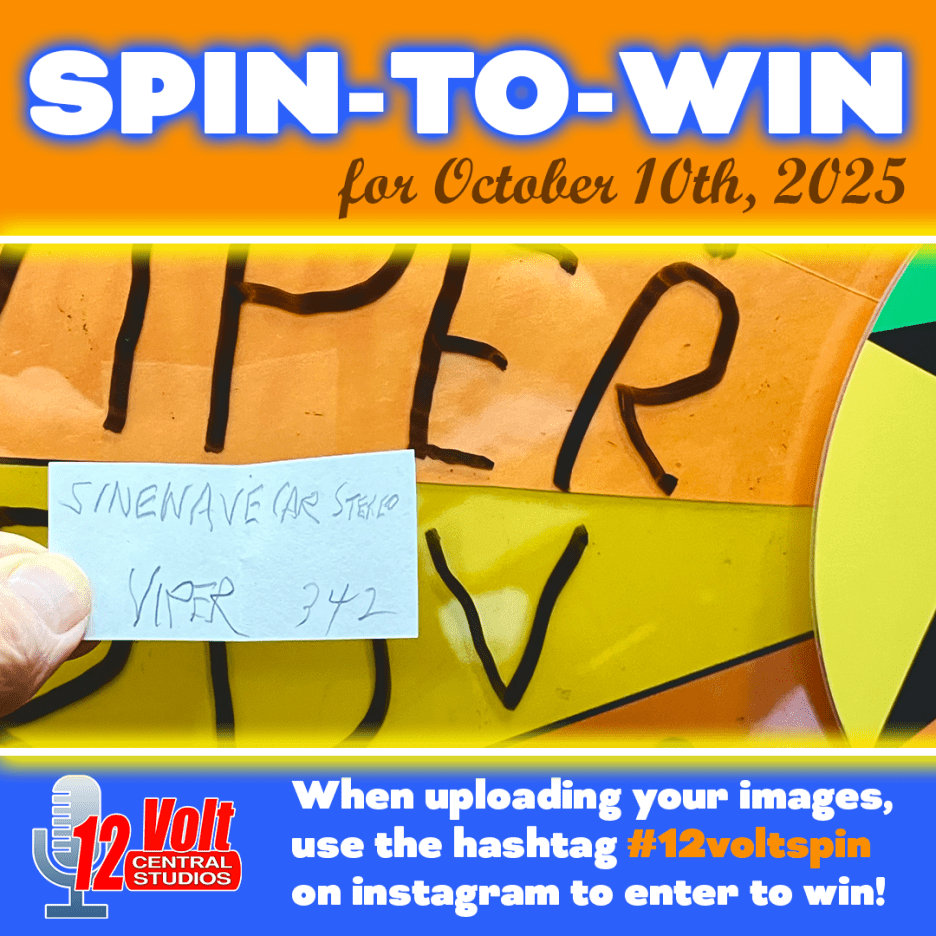 The 12volt Spin-To-Win Wheel rolled for the 342nd time on Friday morning on October 10th. The Wheel landed on the VIPER space and the SineWave Car Audio slip was drawn from the jar. An Instagram post of the winning spin slip was posted. A video of the Wheel spin was also posted.