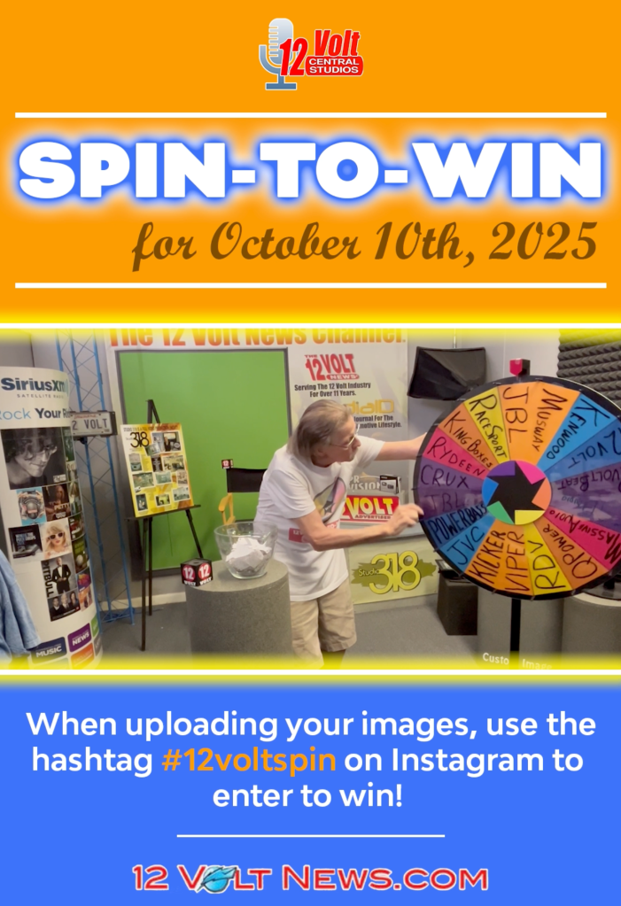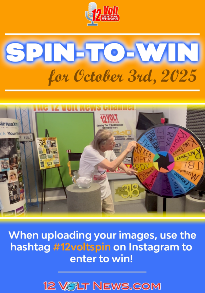 12VOLT CENTRAL STUDIOS (10.11.25) The 12volt Spin-to-Win Wheel was created to bring an element of fun to the 12volt industry. The weekly 12volt Spin-To-Win Wheel is now spinning in Year 7.