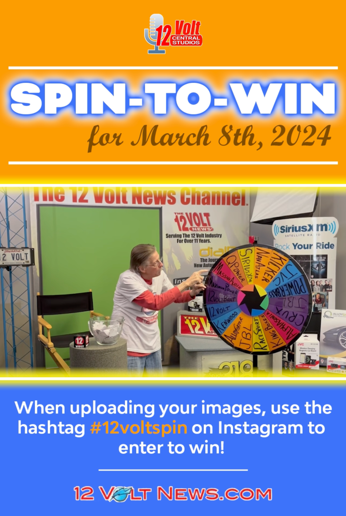 Past winners of the 12volt Spin-To-Win include…Stereo & Video Center-Tyler TX, The Outlaw Garage-Franklin TN, Exotic Sounds-West Palm Beach FL, Endless Possibilities-Aurora IL., Go Auto Sound in Union City NJ, Al&Ed’s South Bay CA, No Limitz Car Audio in Upland CA, Neil’s Specialty-Eureka CA, Sturgess Customs-Lexington SC, Audio By Art-San Antonio TX, SMS Car Audio in Marreo LA and Sweet Wheelz in Mississauga Ontario Canada, Cartronics in Biscayne FL, The CarAudio Shop in St Louis MO, Exotic Sounds in West Palm Beach FL, High North Customs in Grand Prairie Alberta Canada and AMS Audio in Bakersfield CA, Team QRT in Abbeyville LA and California Sound in Fontana CA and Jackie Cooper Electronics, Oklahoma City OK, MARS Audio-Orlando FL, All American Audio in Nutley NJ, Proline Car Stereo in Brooklyn NY, Custom Shop Miami, Tunes and Tint in Lakeland FL, Mobile Concepts Inc in Mokena IL, Seismic Auto Sound in Concord CA, Brooklyn Car Audio in Brooklyn NY, Audio Solutions in Florence MS, Enhanced Customs in Largo FL, Rayco Auto Clinic, Audio Design in San Jose CA, Go Bass Mode in Florida, Avenue Sound in Freeport NY, Audio Plus in Riverview FL, Stereo Zone in Whittier CA, In-Phase Car Audio in Omaha NE, AutoLife Group, N&H Electronics, SK Customs, Land & Sea, The Audio One, NC Custom Shop,Tint World Orlando, Ricky Smith’s Audio, VIP Custom Woks, Mobile Audio Concepts, Audio Lad, Sound Sensations, Dave’s Stereo, Stereo Design, Badlands Customs, Custom Audio-Erie PA, Voltz Autosports-Bridgeport CT, Infinity Sound and Security-Kissimmee, Autosport Plus-Canton OH, Stereo City Pros in Carmichael CA, Devine Concepts in Naples FL, The Sound Shop in Indian Trail NC, Extreme Performance Audio in Fresno CA, Audio Depot in Arlington TX, Audio Security in Houston TX, Earmark Car Audio and Marine in Lewisville TX, Audio Jam in Bear DE, Stereo City Ontario, Ontario CA, Audio By Art, San Antonio TX, Code Zero Customs in Tulsa OK, Ken’s Car Tunes in Mobile AL, Soundz Plus in Naperville IL, Markland Designs in Lithonia GA, Electronics Plus in Salinas CA, Xtreme Autosports in Santa Clarita CA, Superior Audio Sounds in San Angelo TX, Model Electronics in Ramsey NJ, Texas Dreamz Customs in Spring TX, Wired Electronics in Linden NJ and Intense Car Audio in OKC, OK, Underground Auto in Sarasota FL, Car Toys Tulsa in Tulsa OK, Real Audio in Erie PA, Go Autosound in Union NJ, DFM Stereo in Ukiah CA, Impact Tint and Audio in Tyler TX, Mobile Sound Systems in Arlington TX, Redline Audio and Performance In Spindale NC, Car Audio Land in San Diego CA, Audio X Custom Car Audio in Florence AL, River Oaks Car Stereo in Houston TX, American Radio Orlando in Sanford FL, Illustrious Customs in Woodbridge VA, Remote Start Pros in Lawrence MA, HiPro Audio in Victoria TX, AudioPlanetNY in Huntington Station NY, Endless Possibilities in Aurora IL, Audio Finesse in Santa Monica, Drive Customs in San Luis Obispo CA, Custom Works, Noblesville IN, AtoZ Detail in West Haven CT, Cars 843 in Charleston SC, CarTunes Atlanta in Atlanta GA, Mobile Concepts in Garwood NJ, Duke’s Car Stereo in Flint MI, Infinity Auto Sound, King Car Audio in Norwalk CT, PopTronics in Baltimore MD, Sanford Sound in Sanford ME, Angelvip2474 in Draper UT, Dynamic Car Audio in Baltimore MD, Hi-Pro Audio in Victoria TX, Car Stereo Max in Houston, Pro Audio Center in Richland MS, Rhodes Off-Roads in Farmington MO, Model Electronics in Ramsey NJ, Class A Sounds in Athens OH. Just Audio Video in North Providence RI, CT_Custom in Philadelphia, Audio Solutions in Florence MS and The Audio Shop RC in Rapid City SD, DG Motorsportz in High Point NC, ST Mobile in Texarkana TX, AR Custom OC in Orange CA, Temecula Mobile Sound in Temecula CA, Unique Auto Sound in Lindenhurst NY, D’s Garage in Corona CA and DS2 Mobile Solutionz in Tomball TX, C G Car Audio in Kissimmee FL, California Audio in West Valley City UT and The Action Audio Store in Wethersfield CT, Eclipse Car Audio in Vancouver WA, Electronics Depot Car Audio in Altamonte Springs FL. Car Audio Garage in Pearland TX, Pinnacle Autosound in Lake City FL, J H Audio in Bowling Green VA, The Car Audio Shop StL in High Ridge MO, Anthonys Car Stereo in North Highlands CA, Flynn Audio in Middleton WI, Living Loud Car Audio in Pelham AL, Trail Star Audio in Minnesota, On The Spot Audio in Pennsauken NJ, Animated Car Audio in Essex MD, West Coast Car Audio in Citrus Heights CA, Modified Auto Sound in East Alton IL, Star Car Audio in Hermiston OR, VapeNAudio in Clovis CA, SoundWorks in Millersville MD Eclipse Car Audio in Vancouver WA, J A Custom Audio in Houston TX Jose Electronics in North Hills CA, Sound Proof Car Stereo in Douglasville GA, Auto Additions in Springfield IL, Elite Car Audio in Hollywood CA, Masters Car Stereo in Greenville SC, Audio Plus in Eden NC, Seismic AutoSound in Novato CA, Car Audio Addicts in Pittsburgh PA and AudioKing Tinting in Yakima WA, Arias Tint and Alarms in Duncanville TX, Odeh Car Audio in Gadsden AL, 12volt Specialist in Newark DE, Cutting Edge Audio in San Diego CA, Southern Auto Fab in Lafayette LA, California Sound in Fontana CA, Big Boyz Toyz in Florence SC, 740 Audio in Athens OH and 12volt Outfitters in Hollywood FL., High Quality Auto Sound, Lawrence MA, Custom Car Stereo SC in Spartanburg SC, Zier Box in Dallas TX, Maximum in Manville NJ, Audio Car Stereo in Miami FL, Mach 1 Audio in Washington MO, Doren Car Stereo in Queens Village NY, Side-x-Side Audio in South Charleston WV, Sound Concept in Nanuet NY, Pda Road Gear in Littleton CO and A-Plus Audio and Tinting Newington CT, Audio Electronics in Indianapolis IN, Tint and Sound in Frederick MD, Tint World Wilmington DE, VIP Autoworks in Mentor OH, All Out Audio in Killeen TX, Yong’s Audio in Indianapolis IN, Custom Audio Concepts in Lima OH, Clear Vibrations in Quakertown PA, The Outlaw Garage in Columbia TN, Xpert Car Audio in Layton UT, No Doubt Window Tint in Ardmore OK, San Diego Car Stereo in San Diego CA, 