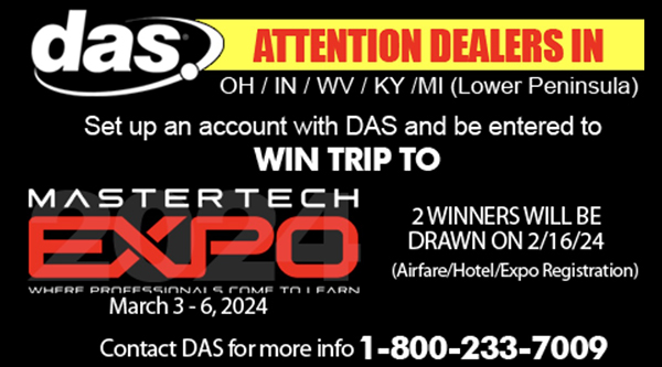 PALMYRA, PA (02.15.24) – DAS is offering an all-expense-paid trip to MasterTech Expo for two (2) installers in the Ohio Valley. These contestants will be chosen from a drawing which will consist of brick & mortar 12V dealers who have applied and opened an account with DAS.