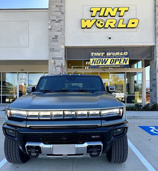 The new Tint World building in Conroe, along with the new HUMMER out front, draw the attention of consumers on the street.