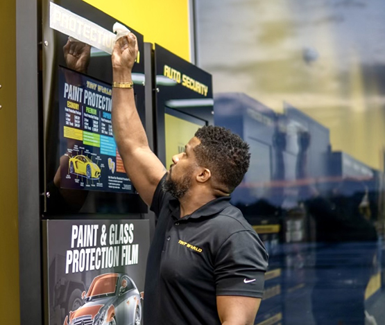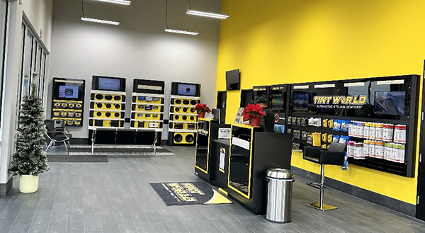 The sparkling showroom, in distinctive Tint World colors, welcomes consumers.