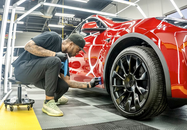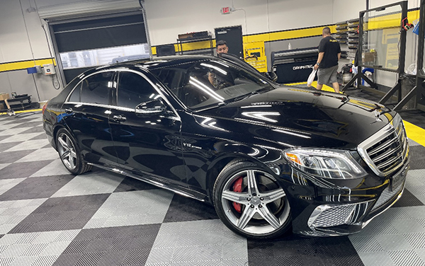 Larue is shown in the Install bay applying ceramic coating to this vehicle.
