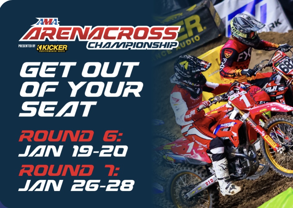 The KICKER AMA ArenaCross is Livin’Loud in 2024 and the next 2 events will be in Guthrie OK which is just 33 miles from KICKER’s world HQ in Stillwater. Previous AMA ArenaCross events in Guthrie have been standing room only in the stands. The dates are January 19/20 and 26-28.