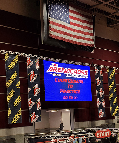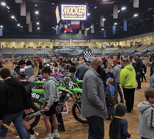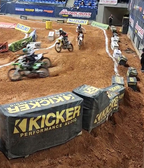 HOBBS, NM (02.27.22) – The AMA KICKER Arenacross 14-City 2023 Series raced into the Lea Country Event Center in Hobbs NM on Friday, February 24th. KICKER showcased products in the lobby and racers were flying high on the track for an enthusiastic crowd.