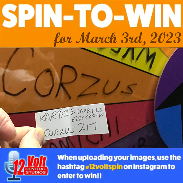 The 12volt Spin-To-Win Wheel rolled for 217th time on Friday morning March 3rd. The Wheel landed on the Corzus space and the Kartel Mobile Electronics slip was drawn from the jar. An Instagram post of the winning slip was posted. A video of the wheel spin was also posted.