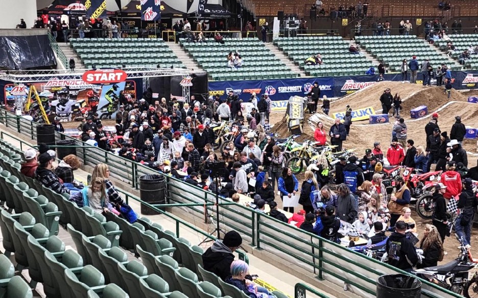 New for the AMA KICKER Arenacross Series for 2023 is the pre-racing Pit Party. Fans get a chance to meet and talk with racers on the track and in the pit area. “This Pit Party was the best so far this year. Not only did fans get to meet and talk with their favorite they are walking all over the track for over an hour before the racing started” Morrell added.