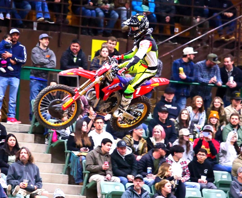 DENVER, CO (02.13.23) – The KICKER AMA ArenaCross 14-City Series raced into the National Western Complex in Denver on Friday, February 10th. The Complex seats 4700 in fixed seats and the riders were racing and flying high to an enthusiastic crowd.