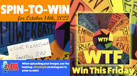 SHREVEPORT LA (10.015.22) WTF…Win This Friday. Clear Vibrations won the PowerBass Prize on the 12volt Spin-To-Win Wheel 200 on Friday morning, October 14th.