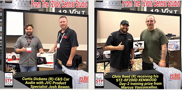 JVC and Kenwood hosted training sessions and presented a prize to attendees. Curtis Dickens from C&S Car Audio won a JVC Multimedia receiver in one of the 2 JVC training sessions. Chris Reed from Stereo Video Center in Tyler TX won a KENWOOD STZ-RF200D in one of the 2 KENWOOD sessions.