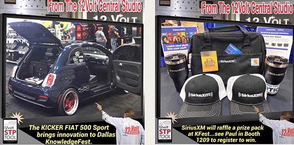 The KICKER FIAT 500 demo brought a lot of technology to the event with KEY line of all-in-one amplifies/processors. Paul Trueman in the SiriusXM booth offered a raffle prize package for dealers registering for the SXM training website.