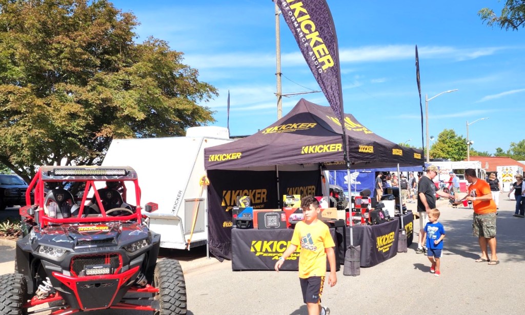 “With KICKER’s sponsorship we had a super booth spot on the midway, On Saturday morning the KICKER tent, with products on the table and the KICKER RZR by the booth, was set. On the tabes KICKER audio, marine, bike, Powersports and Lifestyle products were positioned for members of the crowd to check out. The KICKER Polaris XRV was Livin’ Loud by the tent” Lorin Morrell related.