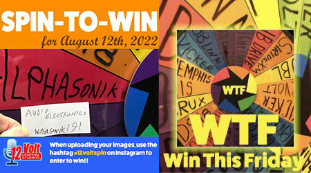 SHREVEPORT LA (08.013.22) WTF…Win This Friday. Audio Electronics won the Alphasonik Prize on the 12volt Spin-To-Win Wheel 191 on Friday morning, August 12th.