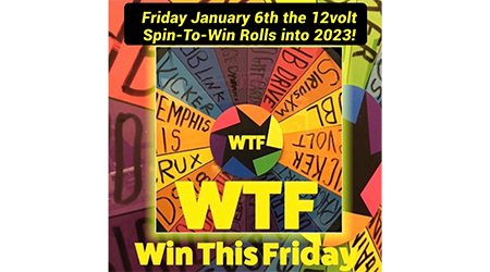 WTF… Where’s the Fun. On the next spin of the 12volt Spin-To-Win Wheel… on Friday January 6th. With the Christmas and New Years Holidays falling on weekends we will delay the next 12volt Spin-To-Win Wheel until Friday January 6th and get Year 5 off to a very fast start with Spin 209.
