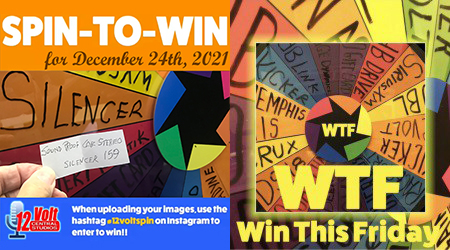 The 12volt Spin-To-Win Wheel rolled for 159th time on Friday morning December 24th. The Wheel landed on the Silencer space and the Sound Proof Car Stereo slip was drawn from the jar. An Instagram post of the winning slip was posted. A video of the wheel spin was also posted.