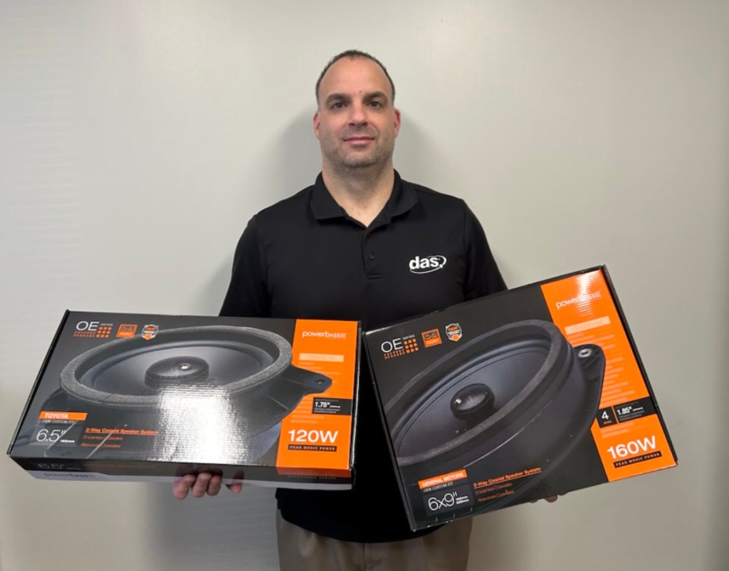 Ken Litten, DAS Sales and Marketing Manager, recently sent an image of Ben Mootz holding PowerBass OE Direct Fit Series Speakers. Mootz held the products in a hallway at the DAS facility in Palmyra PA. A fellow DAS staff member snapped and image and sent it along to the 12volt Central Studios.