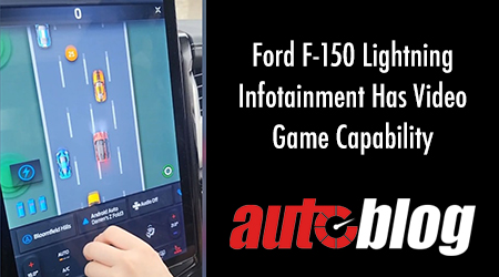Darren Palmer, Ford’s VP of global EV programs, posted a video to LinkedIn with the caption, “Some cute little games now on the F-150 Lightning. Proving a hit with my kids in final testing …” We’ll assume it’s his kid’s hand in the video using the volume knob to weave some Ford model — perhaps the Mustang Mach-E — through traffic on a four-lane road. We’ll also assume that since Palmer wrote “games,” there will be more than one available in the system.