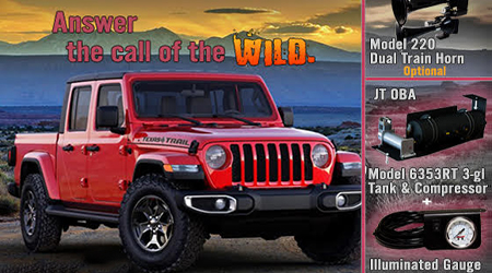 TUSCON, AZ (07.30.2021) – The JT-OBA Onboard Air system was designed to perform under the most extreme conditions. Each system is 100% Bolt-On and features the heavy-duty Kleinn model 6450RC WATERPROOF air compressor with a 2.8-gallon air tank mounted on a superior custom designed mounting bracket. NO Cutting, NO Drilling or Modifications are necessary. These Direct Fit systems include all the necessary air line, hardware, fittings and wiring kit with 30-amp relay.