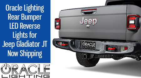 “We noticed a consensus of Gladiator owners who had the same problem…complaints of low visibility when backing up at night,” said Justin Hartenstein, Oracle Lighting director of development. “Many tried to supplement with auxiliary lights and light bars which just did not fit, had limited ground clearance, and just looked out-of-place. We immediately saw an opportunity to use our expertise to provide a functional integrated solution.”