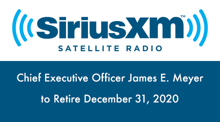 NEW YORK, NY (09.16.2020) – SiriusXM has announced that Chief Executive Officer, James E. Meyer, intends to retire on December 31, 2020. Upon Mr. Meyer’s retirement, Jennifer C. Witz, President, Sales, Marketing and Operations, will become the Company’s new Chief Executive Officer.