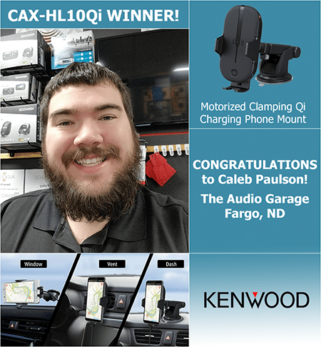 Caleb Paulson, The Audio Garage in Fargo ND, was the most recent winner of the KENWOOD Qi mobile charger. Paulson stated “The presentation was very good and Josh Bowen did a super job. I can’t wait to see the AC Camera… also the new mechless receiver with the new screen.”