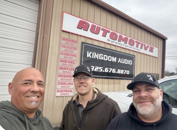 Jorge on the left with a stop at Kingdom Audio team members Drew and Willie in Abilene on Monday.