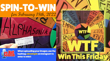 The 12volt Spin-To-Win Wheel rolled for 166th time on Friday morning February 18th. The Wheel landed on the Alphasonik space and the Audio King and Tinting slip was drawn from the jar. An Instagram post of the winning slip was posted. A video of the wheel spin was also posted.