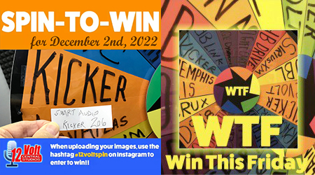 The 12volt Spin-To-Win Wheel rolled for 206th time on Friday morning December 2nd. The Wheel landed on the KICKER space and the Smart Audio slip was drawn from the jar. An Instagram post of the winning slip was posted. A video of the wheel spin was also posted.