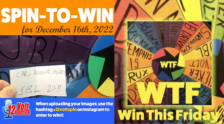 SHREVEPORT LA (12.17.22) WTF…Win This Friday. Car Audio One won the JBL prize on the 12volt Spin-To-Win Wheel 208 on Friday morning, December 16th.