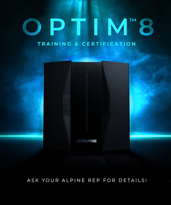 AUBURN HILLS, MI (06.23.23) – Alps Alpine North America, Inc. (“Alpine”) will offer training and certification opportunities for Alpine Authorized Retailers and Distributors on the new Alpine OPTIM™8 8-Channel Hi-Res Sound Processor and Amplifier with Automatic Sound Tuning.