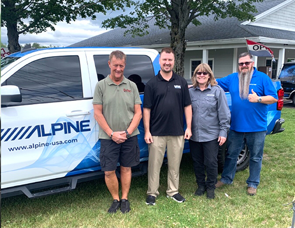 SANFORD, ME (06.12.23) – Sanford Sound hosted an Alpine Experience on Tuesday, June 6th. The Alpine Pickup rolled in with Colin Vargo, Alpine Brand Specialist, behind the wheel. Vargo was joined by Alpine Direct Representive Colette Beaudoin and the final setup for the event took place on the windy Tuesday. Nate Merrille, Sanford Sound representative from area distributor GoFast Solutions, was also in the house.
