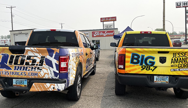 Two of the three radio remote trucks pictured out front of Site on Sound.