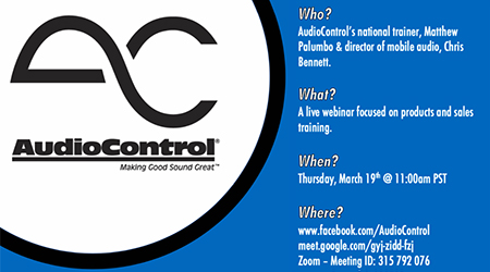 Dealers, manufacturer representatives, distributors and enthusiasts who attend the webinar may get a better feel for the unique lineup of solution-based products that Audio Control delivers to the 12volt marketplace.