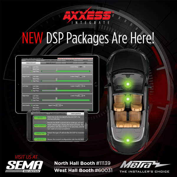 HOLLY HILL, FL (10.23.23) – Axxess by Metra Electronics is unveiling new high-voltage active line output converters (LOCs), an active LOC with bass enhancement processor, active LOCs with bass restoration, load resistors, vehicle-specific active LOC T-harnesses, and active noise canceling (ANC) bypass harnesses products at the 2023 SEMA Show. These products are designed to give car audio enthusiasts reliability and convenience when designing and powering their audio systems and will be displayed from October 31 to November 3 at the Las Vegas Convention Center. Metra’s main booth will be #10539 in the North Hall of the LVCC, and its off-roading and powersports products will be displayed at booth #60031 in the West Hall.