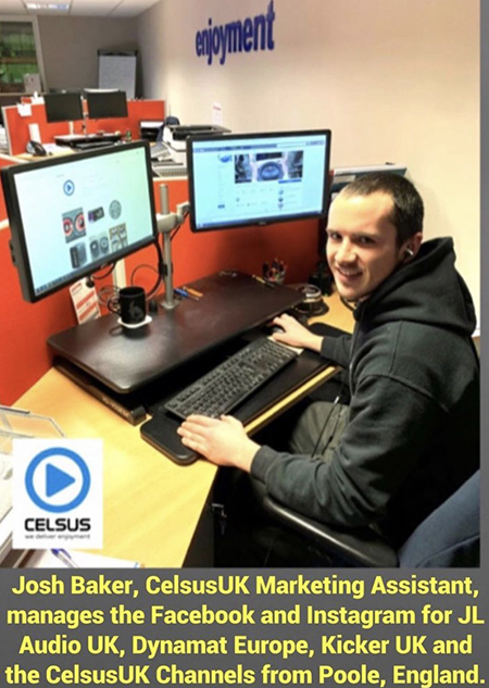 Josh Baker, Celsus Marketing assistant, manages Facebook and Instagram the JL Audio UK, Dynamat Europe, Kicker UK and the company’s own Celsus UK channels. “Social media is a great way to interact with enthusiasts and customers of ours in the UK and across the world. Being able to share product information, as well as install pictures and get instant feedback on what the fans of our brands like, is pretty cool” Baker related.