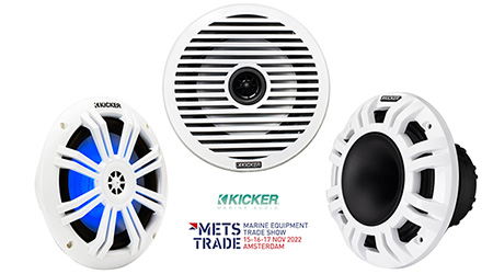 POOLE, UK (11.14.22) – CELSUS UK, Poole based distributor for KICKER AUDIO Marine products in Europe, are displaying three new speaker lines from the Oklahoma based manufacturer on booth 01.531 in hall 1 at METS 15-17th November.