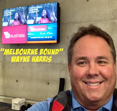 Wayne Harris picture at LAX on Tuesday evening November 12th as he prepared to catch a 15 hours flight to Melbourne.