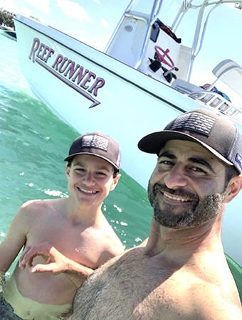 MIAMI, FL (04.06.2020) – Just before the Coronavirus changed all of our lives, Omar Fakhri and his son Laithe drove to South Florida from their home outside Dallas, Texas to pick up the 230 Reef Runner center console that they won in the Battle Breast Cancer Giveaway at February’s Miami International Boat Show. It couldn’t have been a better Spring Break and birthday gift for Laithe, who just turned 12, and his father, who with the Reef Runner Boat, is beginning his “fleet,” adding to his current 26’ center console fishing boat.