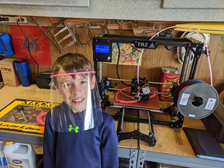 6-year-old Noah demonstrates the protection of the face shield.