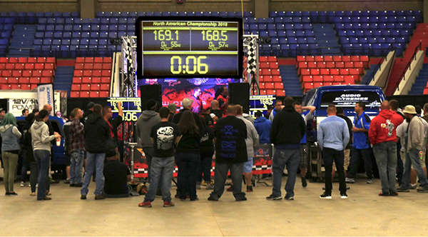 In addition to the action on the track T-shirts were tossed into the crowd during Pro Race breaks and track maintenance periods. Kicker athletes tossed wrapped KICKER T’s into the crowd. A special T had a certificate wrapped inside for a KICKER BullFrog to be picked up at the KICKER display in the lobby. A lucky member of the crowd had a big smile when he picked up his Bullfrog.