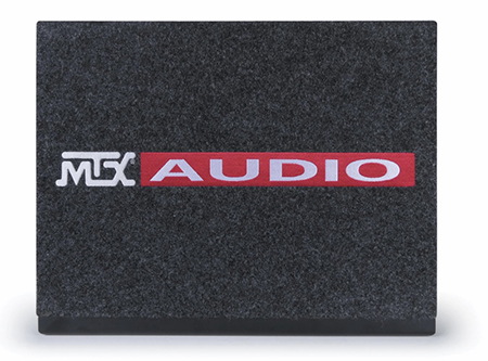 The fit and finish of the enclosures features aviation grade carpeting on the exterior with the MTX Audio logo embroidered on top and the front is finished in a vinyl wrapped baffle panel giving it a high end look and feel.
